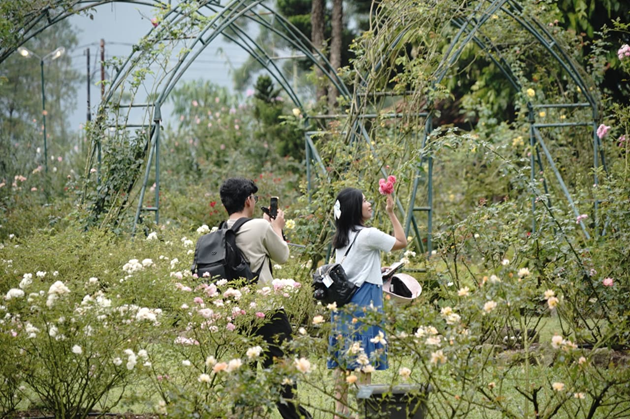 Pengelola menyebut akhir pekan selalu penuh keluarga yang ingin menikmati udara sejuk dan kebun bunga.