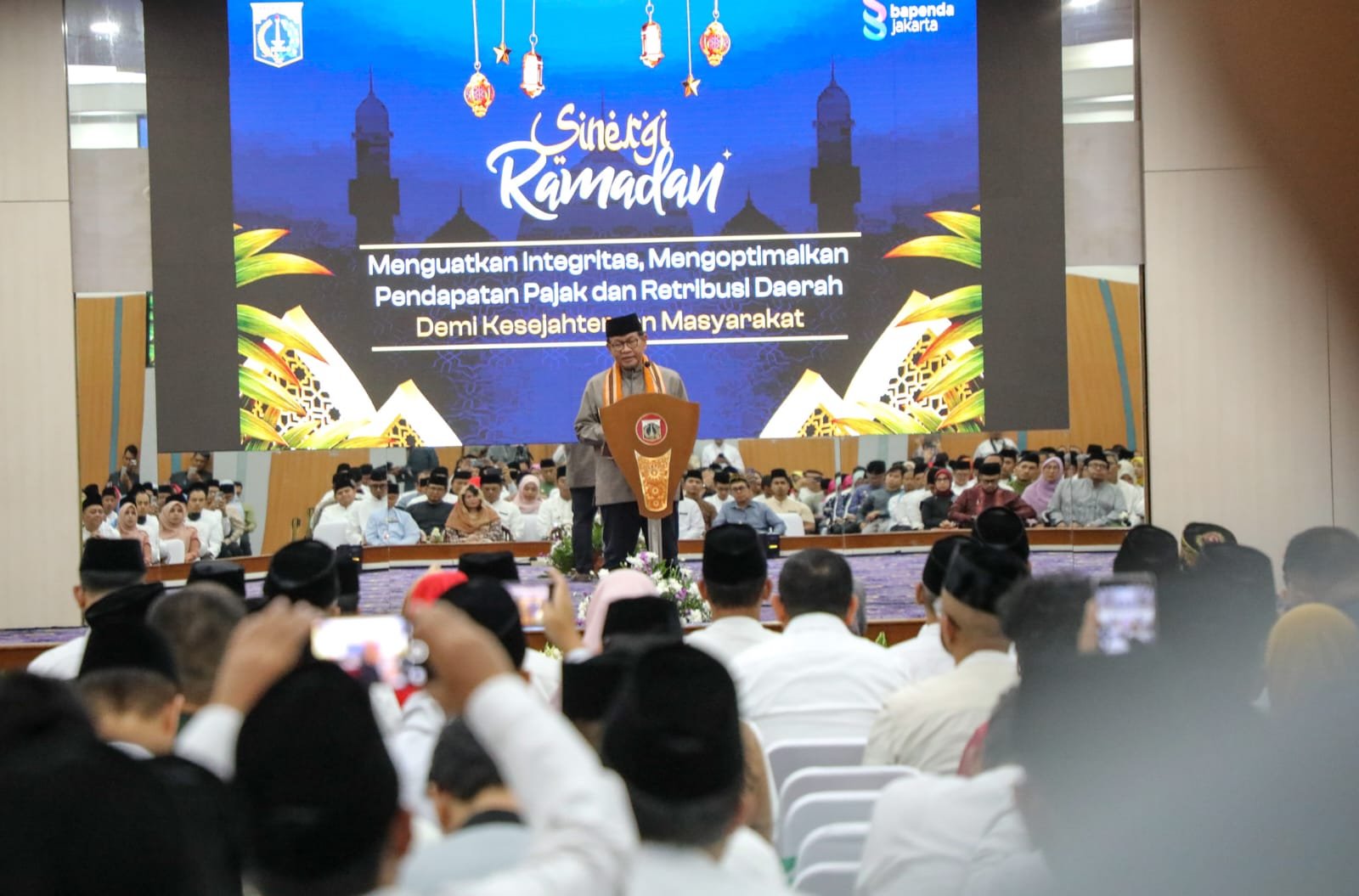 Gubernur Jakarta Pramono Anung bersilaturahmi sekaligus berbuka puasa bersama jajaran Badan Pendapatan Daerah (Bapenda) Provinsi Jakarta di Ruang Serbaguna Lantai 2 Gedung Dinas Teknis Abdul Muis, Jalan Abdul Muis Nomor 66, Jakarta Pusat pada Jumat (13/3).