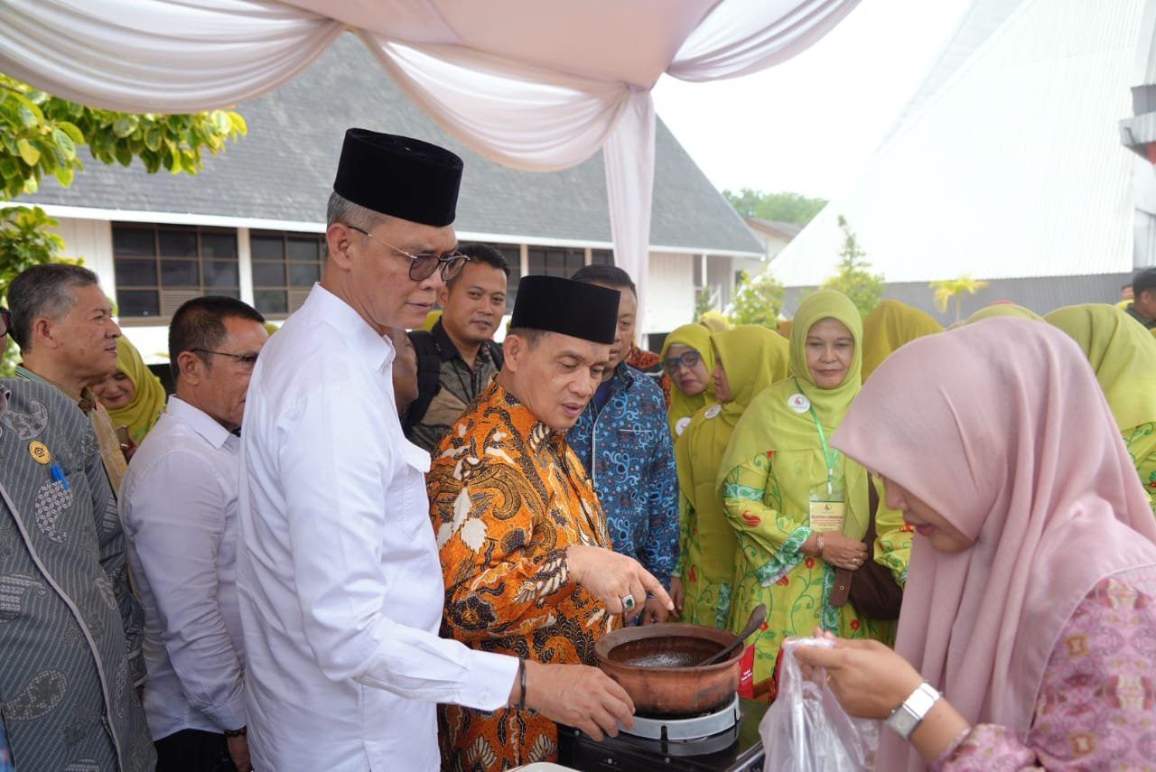 Usai pelantikan, Wamenag Romo Muhammad Syafi’i, didampingi Plt Ketua Umum Fahmi Ummi, Maya Suhasni Siregar, Ketua Dewan Penasihat Fahmi Ummi Aceh, T.A Khalid dan seluruh jajaran pengurus Fahmi Ummi Aceh, meninjau langsung stan – stan UMKM yang berjejer di area depan Anjong Mon Mata.