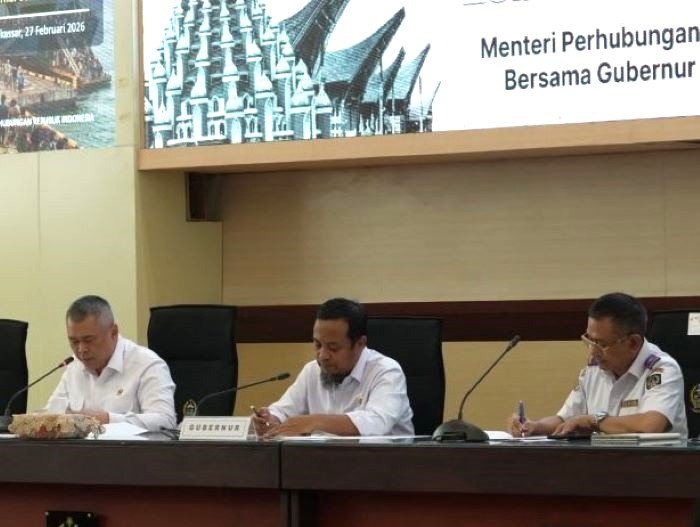 Menteri Perhubungan (Menhub) Dudy Purwagandhi melakukan sinergi kesiapan penyelenggaraan angkutan Lebaran 2026 dengan Gubernur Sulawesi Selatan (Sulsel) Andi Sudirman Sulaiman di Kantor Gubernur Sulsel pada Jumat (27/2/2026).