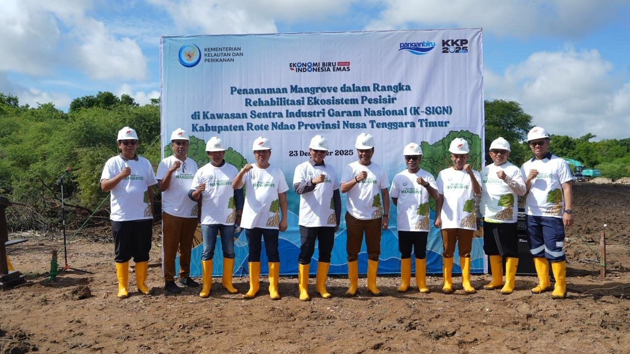 Kementerian Kelautan dan Perikanan (KKP) menegaskan komitmennya terhadap pembangunan berkelanjutan dengan melaksanakan penanaman mangrove di kawasan Sentra Industri Garam Nasional (K-SIGN), Kabupaten Rote Ndao, Provinsi Nusa Tenggara Timur.
