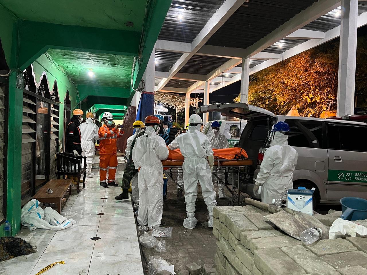 Upaya pencarian dan identifikasi masih berlangsung dengan melibatkan berbagai unsur, termasuk Basarnas, TNI, Polri, BPBD, Pemadam Kebakatan, PMI, Baznas, Tagana, relawan, dan dukungan penuh dari pemerintah daerah dan masyarakat sekitar. I