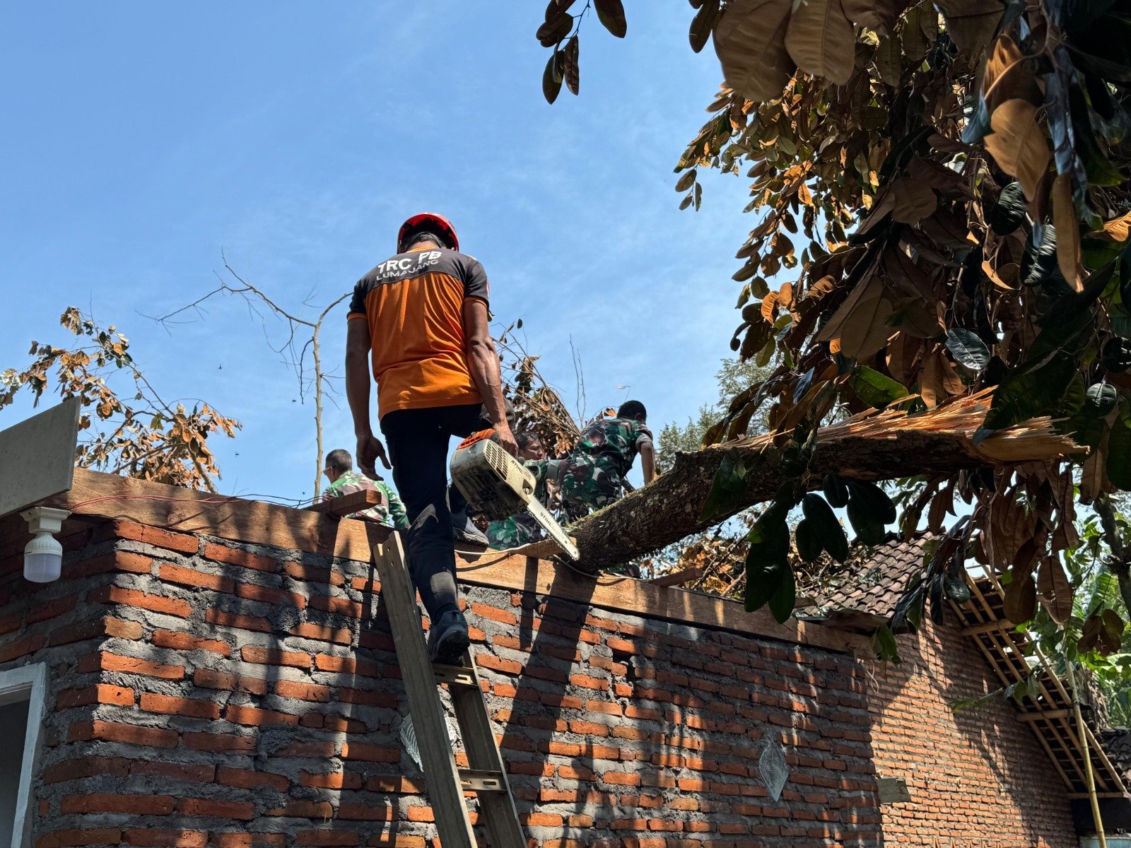 BPBD Kabupaten Pati merespons dengan menerjukan tim reaksi cepat pascakejadian bersama aparat desa setempat untuk melakukan pendataan dan pembersihan material terdampak di area permukiman warga.