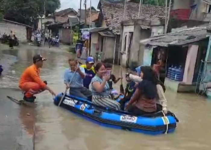 BPBD Kota Cilegon bersama Tagana, Pramuka Peduli, Relawan Rescue Banten, dan Kampung Siaga Bencana evakuasi warga terdampak.
