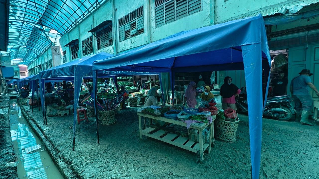 Di balik lumpur yang belum sepenuhnya kering dan parit-parit yang masih dibersihkan, semangat para pedagang untuk bangkit mulai terlihat.