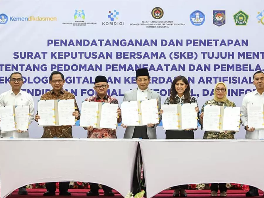 Pemerintah melakukan koordinasi lintas kementerian untuk menerapkan Surat Keputusan Bersama (SKB) 7 Menteri guna mengatur pemanfaatan Artificial Intelligence (AI) di sektor pendidikan.