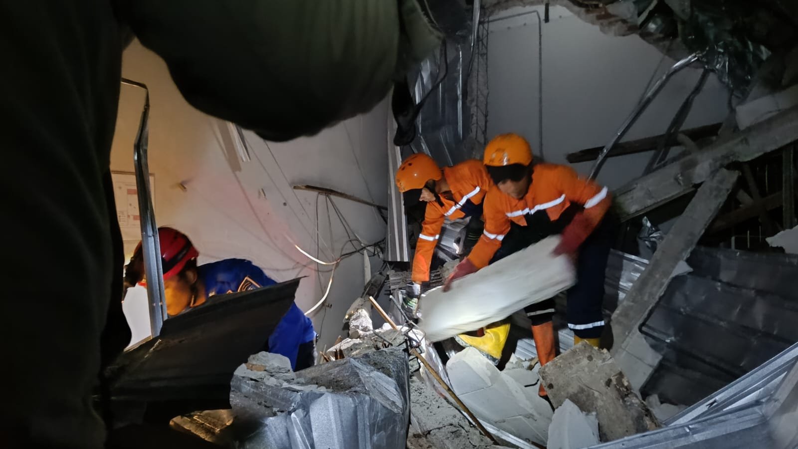 Akibatnya dinding bangunan tersebut ambruk dan menimpa bangunan lain di sekitarnya.