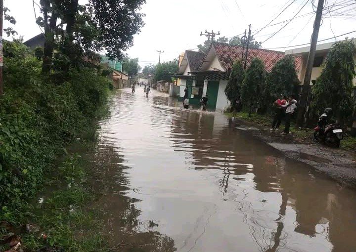 Hingga kini air masih menggenangi sebagian permukiman warga.
