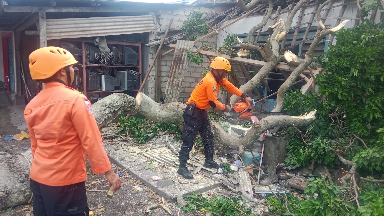 Petugas melakukan penilaian di lokasi terdampak, sedangkan warga melakukan perbaikan rumah secara mandiri.