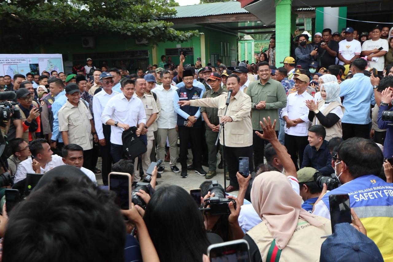 Presiden Prabowo Subianto turun meninjau lokasi pengungsian warga terdampak banjir di MTs 1 Langkat, Tanjung Pura, Kabupaten Langkat, Sumatra Utara pada Sabtu (13/12).