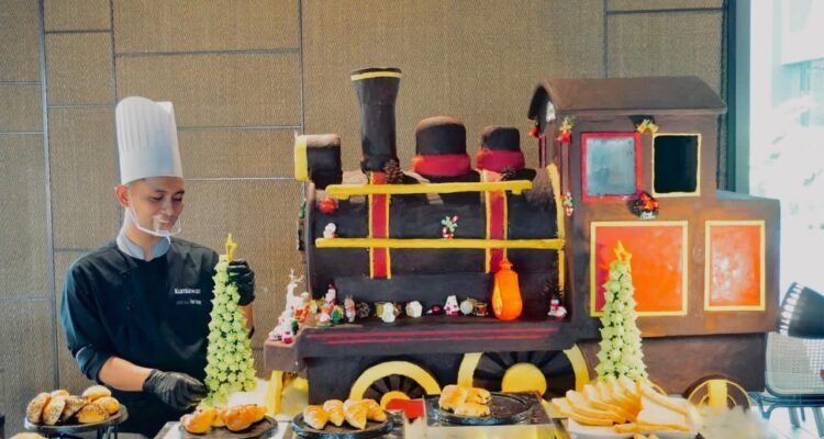 Sambul Natal dengan Grand Mercure Malang Mirama Sulap 60 Kg Cokelat Jadi Kereta