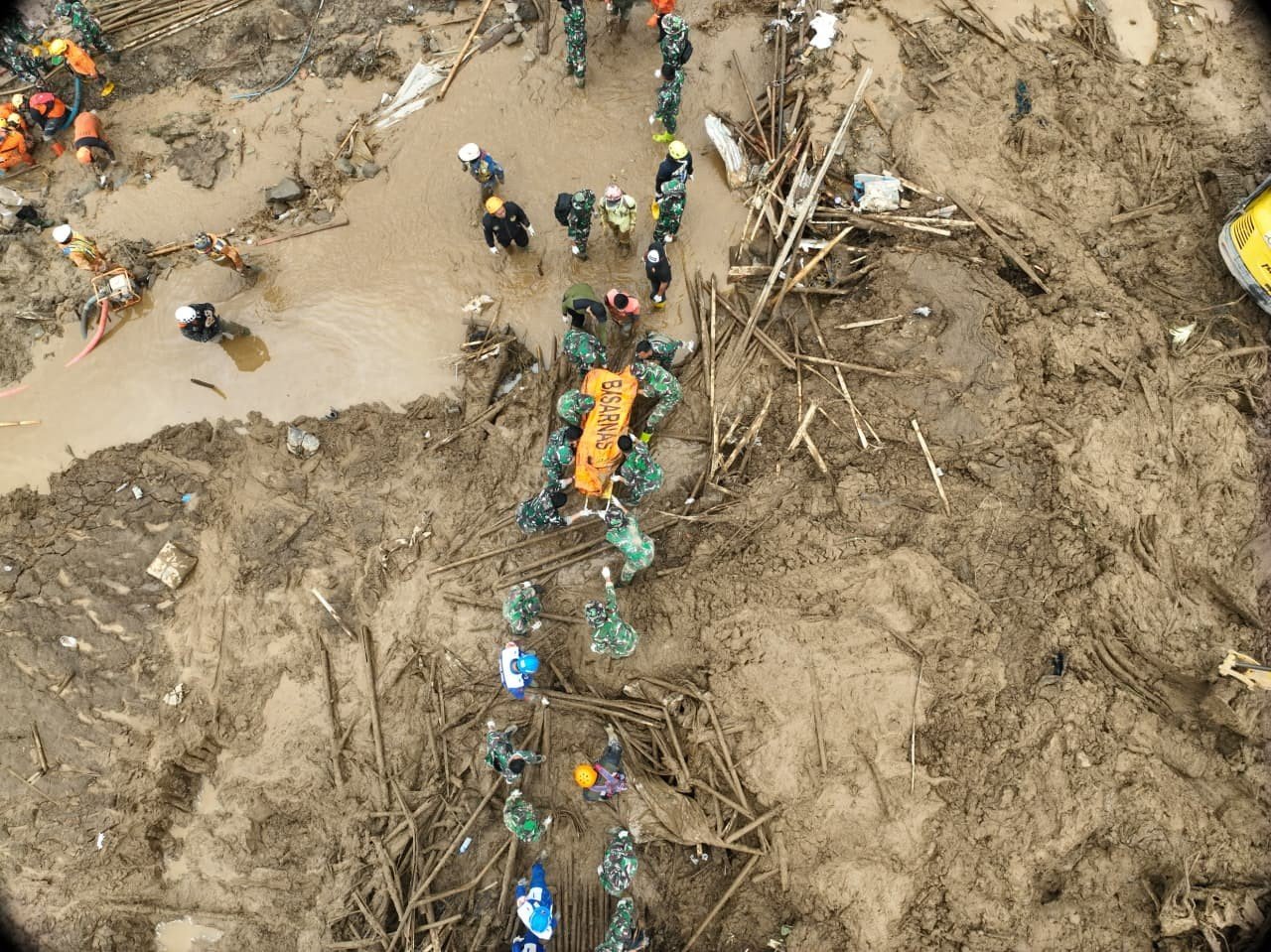 Penguatan alat berat dan anjing pelacak juga terus dikerahkan dalam upaya percepatan pencarian dan pertolongan.